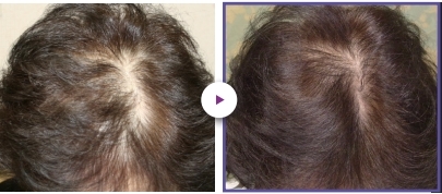A female patient undergoing consistent treatment alongside part-line hair transplant – Her hair has visibly thickened and filled in.