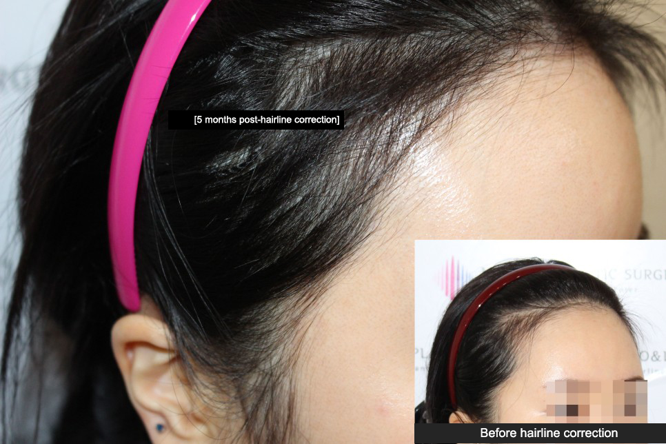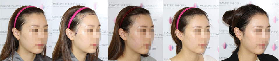 Some of the patients who come to our hospital for M-shaped hairline correction still have existing baby hairs in place. In such cases, it’s essential to transplant hair grafts in between these existing baby hairs without damaging them, ensuring that the direction and angle of the transplanted hairs mimic those of the existing baby hairs for a natural-looking hairline result. In the case of the woman below, existing baby hairs were present in the transplantation area, but through the use of dual slit & forceps technique, the hair grafts were transplanted without causing baby hair loss or visible scars, resulting in the stable and natural growth of hair of various thicknesses.