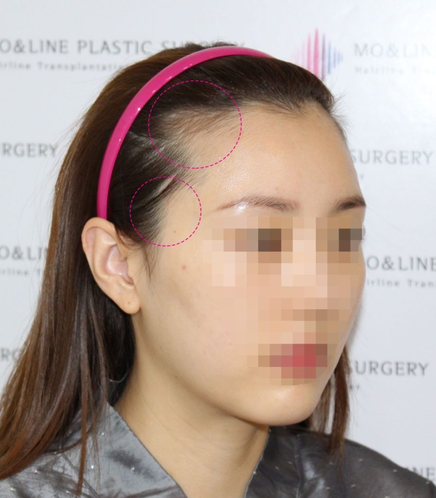 More and more patients are coming to our hospital for re-correction after having hairline correction surgery elsewhere, resulting in an unnatural doll-like appearance of the M-shaped hairline. To prevent such risks from the outset, carefully examine post-operative photos of female hair transplant surgeries to ensure that the hairline appears round and natural without looking awkward, that the sides do not appear narrowed causing the side profile to look cramped, and that there are thick hairs at the front with no loss of fine hairs. At our hospital, we use our experience in facial plastic surgery and hairline correction surgery to analyze various three-dimensional elements of the patient’s face and design harmonious proportions for the receding M-shaped angle and side profile angle.