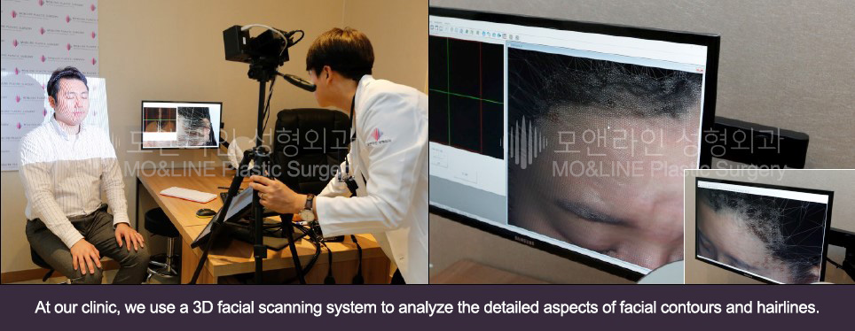 At MO&LINE Plastic Surgery, we have performed hairline correction surgeries requiring over 3,000 follicles using FUE techniques without damaging the follicles, so you can rest assured that unnecessary extraction will not be an issue. Furthermore, with our 3D hairline analysis system, we can provide more accurate measurements of the number of follicles required for each client and offer honest, transparent consultations. This is a more precise approach than simply estimating costs based on a rough visual observation by a consultant or doctor.