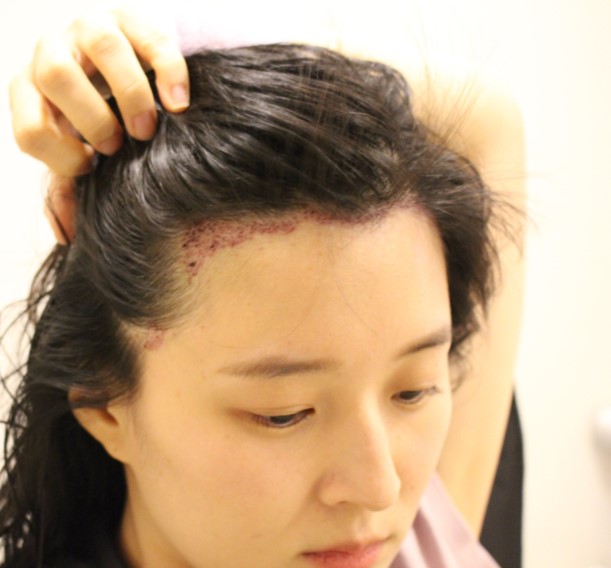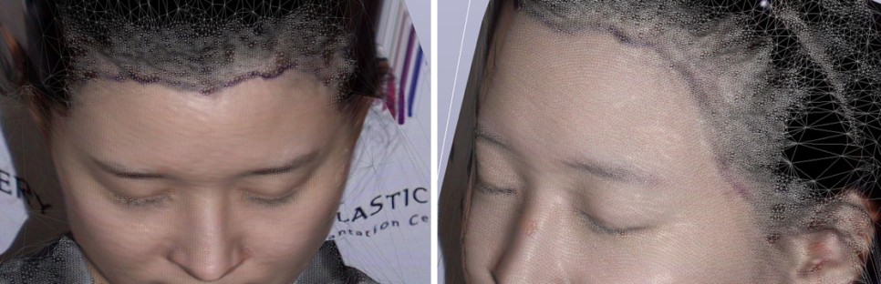 Also, since the left side of her forehead was flatter, we checked the forehead area and volume through 3D scanning analysis and adjusted the hairline design curvature accordingly.