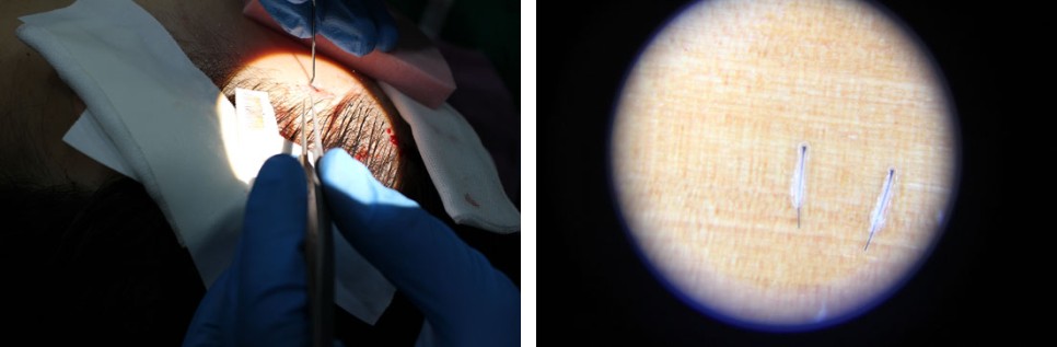 The key is to harvest fine and baby hair follicles without damaging the tissue, as the hair is thin and follicles are lying at an acute angle.