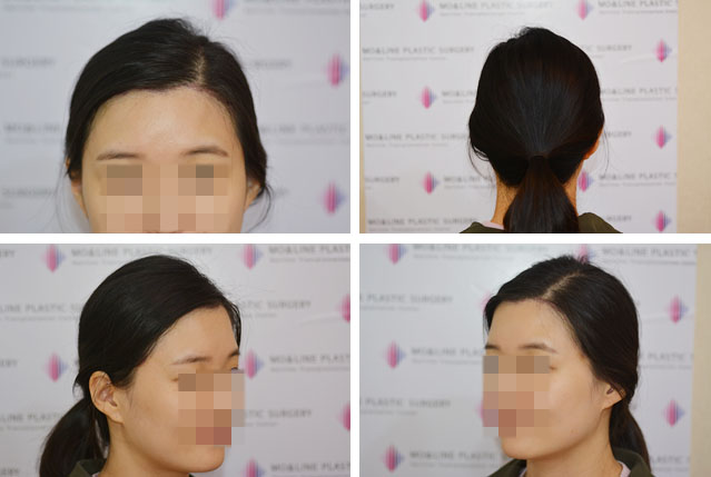 We analyze the facial structure in detail according to the face shape and then proceed with hairline designing (Designing). The lady below didn’t have a high forehead, but she visited Moandline Plastic Surgery Clinic as her forehead hair density decreased in places and the angular forehead became more noticeable with age. Although her face shape was oval, with a round mid-face and slightly developed lower jaw, we did not recommend making the hairline too round or lowering it excessively. (Lowering the hairline too much can make the lower face appear disproportionately large.)